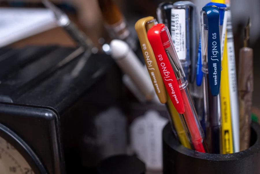עט ג'ל מטאלי או לבן לכתיבה על נייר שחור של חברת UNIBALL היפנית