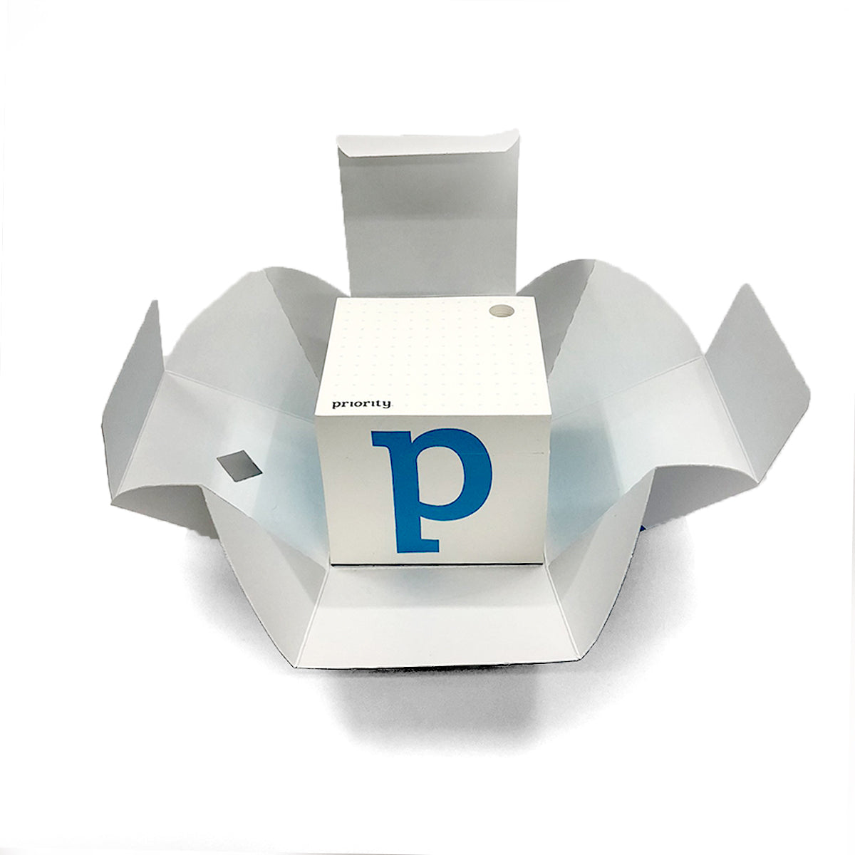 קוביית נייר ממו בשני גדלים עם חור מותאם לעט או עיפרון .