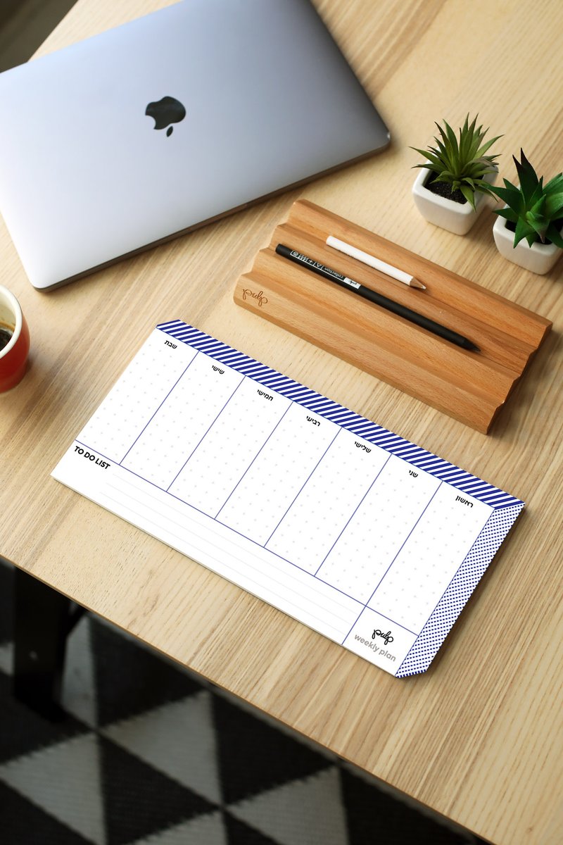 אורגנייזר עץ דקורטיבי לשולחן העבודה.